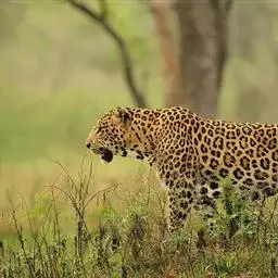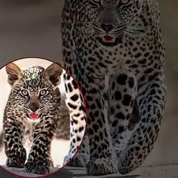 花豹是大型肉食性动物,体形似虎,但明显较小;头小尾长,四肢短健;毛被黄色,满布黑色环斑;头部的斑点…