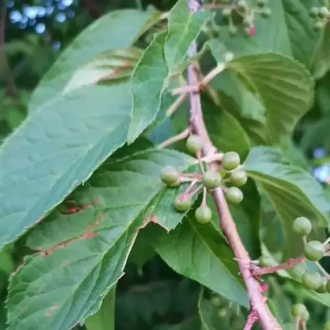 直立灌木或小乔木,高8-12米,枝开展或有时援攀,圆柱形,被黄褐色或淡黄色密绒毛。叶具柄,卵形或卵状长圆形,长6-16厘米,宽4-9厘米,顶端钝或短尖,基部圆形或近心形,或有时截形,多少不等侧,全缘,浅波状或具疏钝齿,侧脉7-9对,细脉稍平行,网状,上面粗糙,被疏贴生硬短毛,后多少脱落,有腺点,下面被淡黄色密绒毛,叶柄粗壮,长1-2.5厘米,被密绒毛。