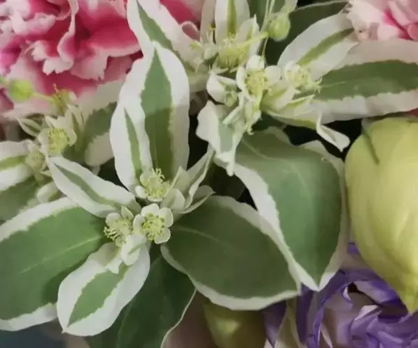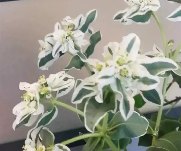 银边翠(Euphorbia marginata Pursh.)是大戟科大戟属植物,一年生草本,根纤细,极多分枝,茎单一,自基部向上极多分枝,高可达60-80厘米,叶互生,椭圆形绿色,苞叶椭圆形,近无柄花序单生于苞叶内或数个聚伞状着生,雄花多数,雌花1枚,种子圆柱状,淡黄色至灰褐色,花果期6-9月。