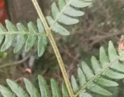 植株高达2米多。根状茎短而斜升,密生黑棕色鳞片。叶柄黑色,基部生宿存的鳞片;鳞片线形,长达2厘米,宽1.5毫米,淡棕色,光亮,有不明显的狭边;叶片三回羽裂;羽片长达40厘米;小羽片长6-9厘米,宽1.6-2.2厘米,向顶端渐狭,深羽裂,距小羽轴2-4毫米,基部一对裂片不分离;裂羽狭长,先端有小圆齿;叶脉分离,每裂片有小脉5-6对,单一,基部下侧一小脉出自主脉;羽轴红棕色,近光滑,残留疏鳞片;鳞片小,灰色,少数较狭的鳞片先端有黑色的长刚毛;小羽轴的基部生鳞片;鳞片黑棕色,有灰色的边,先端呈弯曲的刚毛状,较小的鳞片灰色,基部稍为泡状,先端长刚毛状。孢子囊群生于小脉中部;囊群盖缺;隔丝多,其长度比孢子囊稍长或近相等。