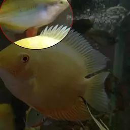 金菠萝鱼,Cichlasoma severum,慈鲷科丽体鱼属。成鱼体长20~25cm,厚侧扁形,…