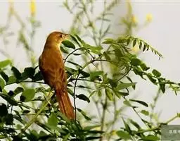 大苇莺:属小型鸟类,雌雄两性羽色相似。眉纹淡棕黄色;眼褐色;翅褐色具淡棕色的边缘;尾羽亦褐色,…