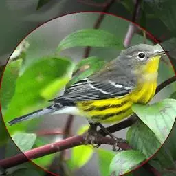 黑脸鹟莺:体长10厘米,是有特色的体小而多彩的莺鸟。粗眉纹,颏、喉及尾下覆羽黄色,脸罩黑,…