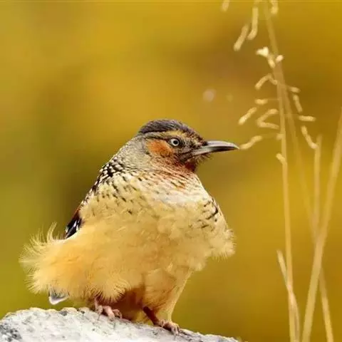 黄喉雀鹛是雀眉科、拟希鹛属小型鸟类,体长11-12厘米。头顶浅黄色具黑色鳞状斑,…