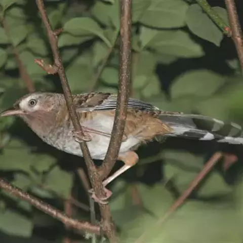 条纹噪鹛是画眉科、噪鹛属中型鸟类,体长28-32厘米。头具短的羽冠,上体栗褐色,飞羽外翻蓝灰色。…