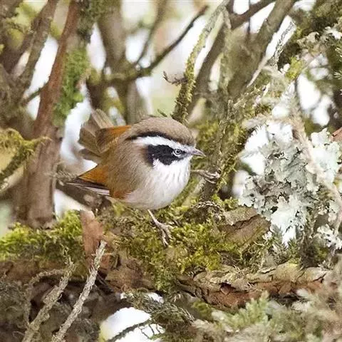 白领凤鹛是画眉科的一类动物。体长15-18厘米。头顶和羽冠土褐色,具白色眼圈,眼先黑色,枕白色,…