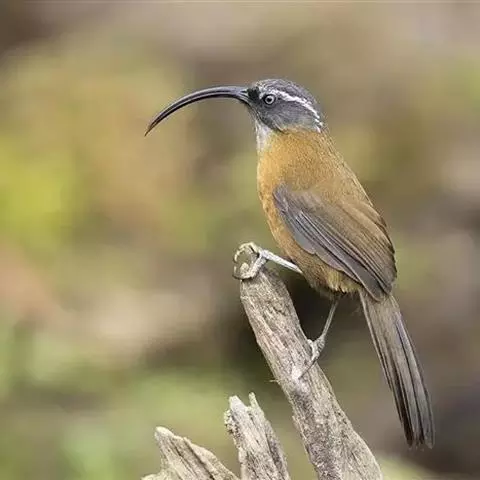 剑嘴鹛:中型鸟类,体长21-22厘米。嘴特别细长而向下弯曲,头顶和头侧烟灰色具长而窄的白色眉纹,…
