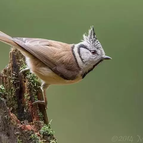 褐冠山雀:为小型鸣禽。体长100-120毫米。头顶和长的羽冠褐灰色或灰色,其余下体橄榄褐色或暗灰色,…