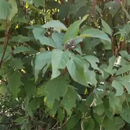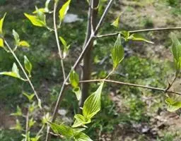 小梾木 落叶灌木,高1-3米,稀达4米;树皮灰黑色,光滑;幼枝对生,绿色或带紫红色,略具4棱,被灰色短柔毛,老枝褐色,无毛。