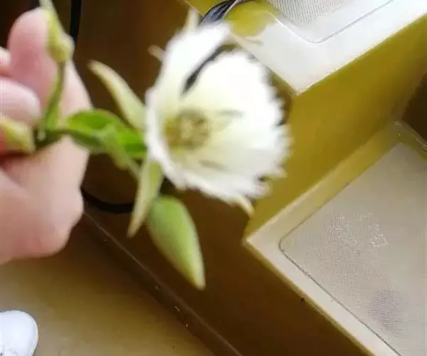 总状花序生当年枝的叶腋内,长5-7cm,有花2-6朵;花较大,直径3-4cm;苞片叶状,无柄,卵形,长1cm,宽7-8mm,两面有微毛,边缘有齿突,基部圆形或耳形,有网状脉及侧脉,宿存;花柄长约4cm,有微毛;萼片5片,披针形,长约2cm,被柔毛;花瓣白色,与萼片等长,倒卵形,外侧有柔毛,先端撕裂,裂片30条,长4-6mm;雄蕊多数,约和花瓣等长,有微毛,药隔突出成芒刺状,长4mm;花盘多裂而连续,围着子房基部;子房2室,无毛,花柱长1cm,有毛;胚珠每室2颗。