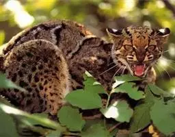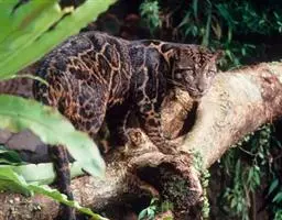 云豹 (学名:Neofelis nebulosa)为哺乳纲的猫科动物,有三个亚种。体长约70-110厘米,尾长约70-90厘米,体重约16-40千克,为豹亚科最小者。身体两侧有6个云状的暗色斑纹,故名。瞳孔长方形,收缩时纺锤形。犬齿锋利,与前臼齿之间的缝隙较大,长度比例在现存猫科动物中最大,能够咬杀较大猎物,此点与史前已灭绝的剑齿虎相似。