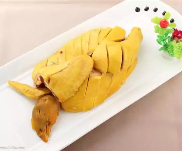 白切鸡又叫白斩鸡,是粤菜系鸡肴中的一种,始于清代的民间酒店。属浸鸡类。其特点为制作简易,刚熟不烂,不加配料且保持原味。白切鸡通常选用三黄鸡与沙姜、蒜茸、葱等食材,慢火煮浸后,晾干切块。成菜后,色洁白带油黄,皮爽肉滑骨香,清淡鲜美。 白切鸡皮爽肉滑,清淡鲜美,驰名粤港澳,现在南方菜系中普遍存在。
