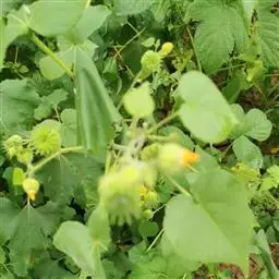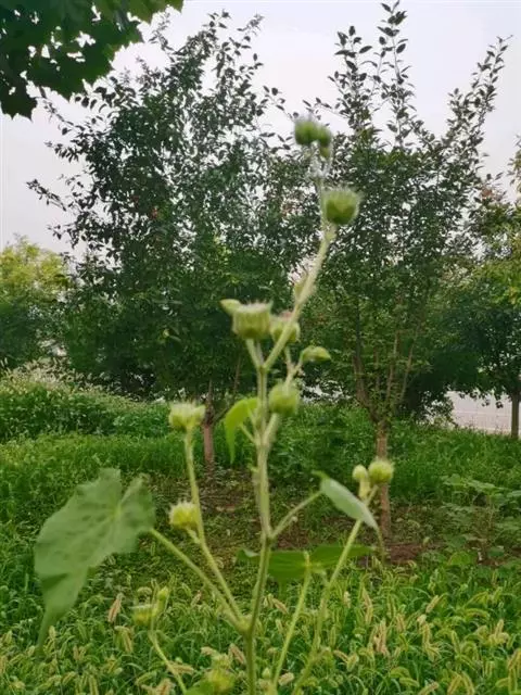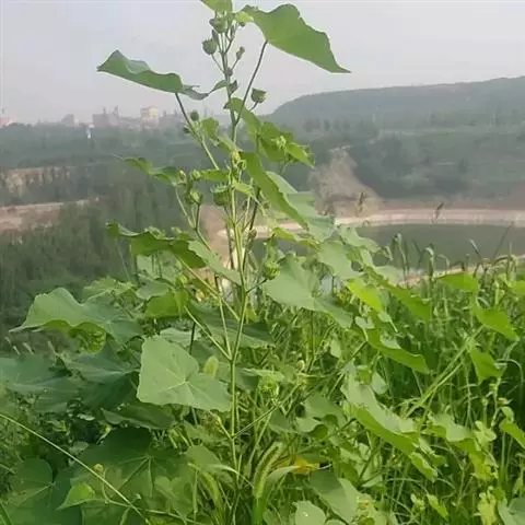 苘麻锦葵科苘麻属一年生亚灌木草本植物。茎秆较高,上面有柔毛;叶子较大且有纹路,浅绿色,边缘不平整,…