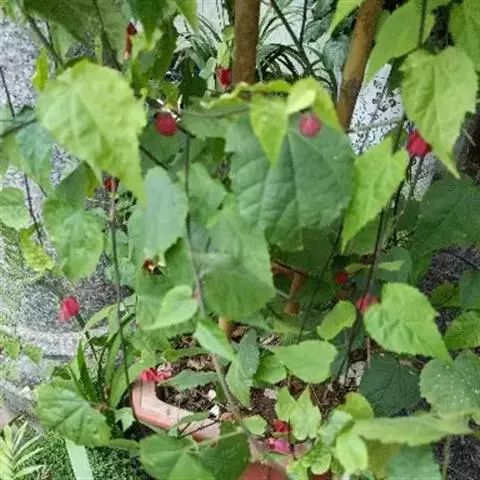 红萼苘麻是锦葵科、苘麻属常绿软木质灌木,叶绿色,长5-10厘米,心形,叶端尖,叶缘有钝锯齿,有时分裂,…