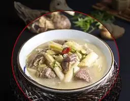 上汤豆苗是一道菜品,制作原料主要有豌豆苗、鸡腿菇、红柿子椒等。调味后撒少许姜丝,…