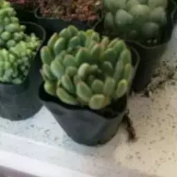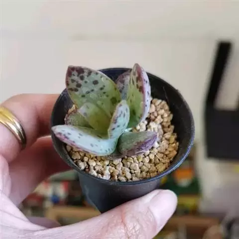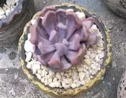 紫珍珠是景天科石莲花属的多年生肉质草本植物。植株中小型;叶片肉质,匙形,呈莲座状紧密排列;叶片粉紫色,…
