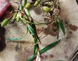 云南石仙桃:根状茎匍匐、分枝,粗4-6毫米,密被箨状鞘,通常相距1-3厘米生假鳞茎;假鳞茎近圆柱状…