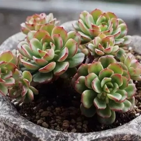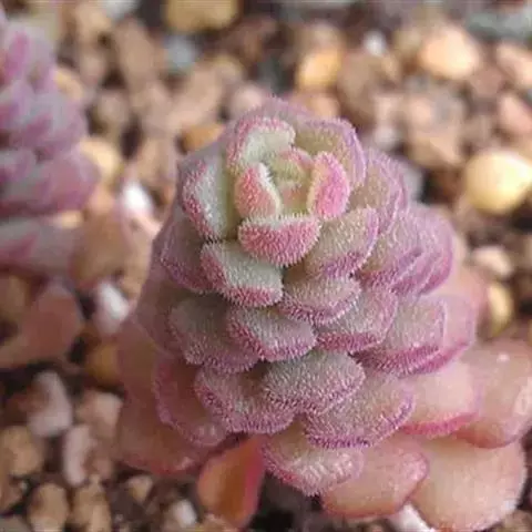 女雏是景天科石莲花属的多肉植物。特征是小巧的株形和橙粉色叶缘。极易生侧芽,…