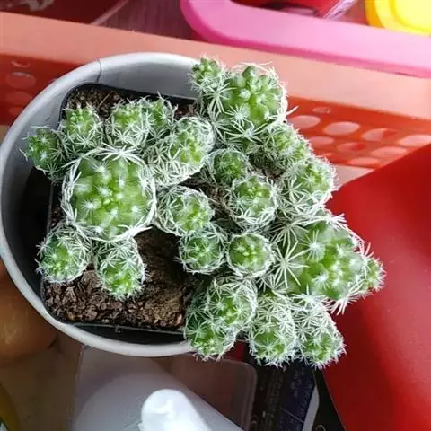 银手球,仙人掌科乳突球属,植株群生,小短圆筒形。原产墨西哥伊达尔戈州。