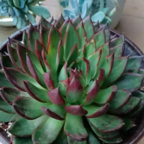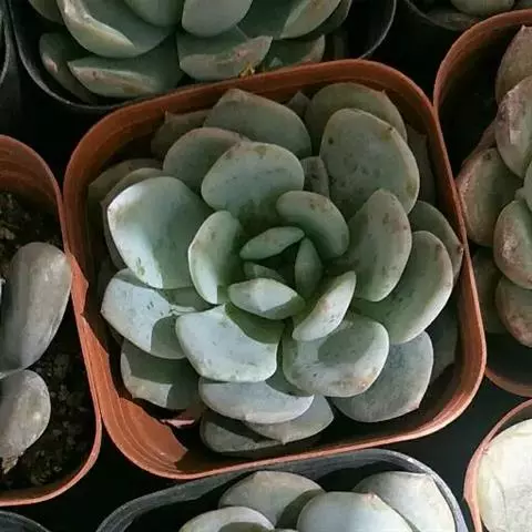 薄叶蓝鸟 叶片蓝绿色,叶尖红色,带粉,花型紧凑,非常漂亮。原产于墨西哥,现世界各地均有栽培。