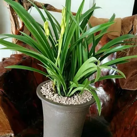 建兰素花,绿白色,清香,一枝开花5至12朵。叶色钢青,细而挺拔,有铮铮铁骨之相,所以叫铁骨素。在日…