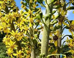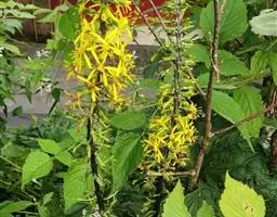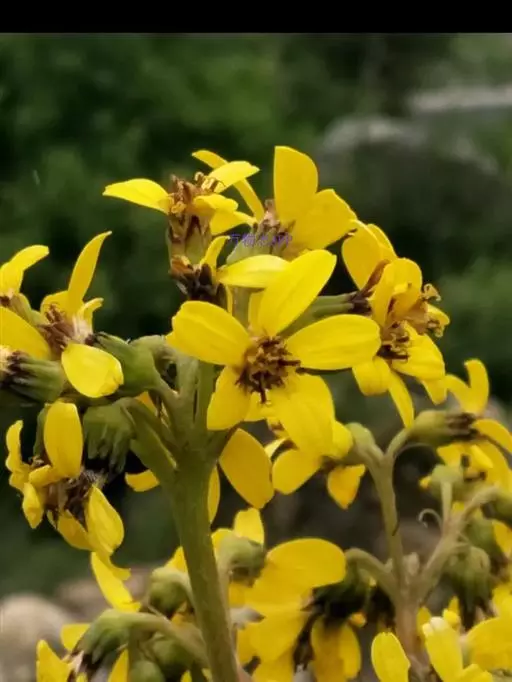 总状花序长4.5-42厘米,常密集;苞片卵形或卵状披针形,下部者长达3厘米,宽0.8-2厘米,向上渐小,全缘或有齿;花序梗长4-12毫米,稀下部者长达8厘米;头状花序多数,辐射状;小苞片狭披针形,全缘,光滑,近膜质;总苞宽钟形、钟形或钟状陀螺形,基部圆形,长7-14毫米,宽6-11毫米,总苞片7-10,2层,披针形或长圆形,宽2-5.5毫米,先端急尖、钝三角形或渐尖,背部光滑,边缘膜质,有时紫红色。舌状花6-10,黄色,舌片倒披针形或长圆形,长10-22毫米,宽3-5毫米,先端钝,管部长5-10毫米;管状花多数,长8-13毫米,管部长4-7毫米,几冠毛白色与花冠等长。瘦果长圆形,长达10毫米,光滑。花果期7-10月。
