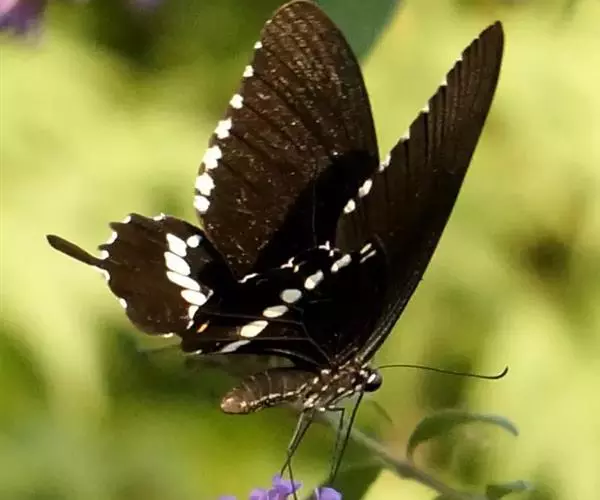 美凤蝶又名多型蓝凤蝶、大凤蝶,是鳞目凤蝶科凤蝶属动物。美凤蝶雄蝶无尾突,翅黑色,…