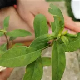 叶互生,匙形或倒卵形以至倒卵状长圆形,长6-12厘米,宽5-25毫米,先端钝圆,基部渐狭,上面绿色,有光泽,下面淡绿色,两面散生黑色粒状腺点;叶柄长5-25毫米,但上部茎叶常无柄。