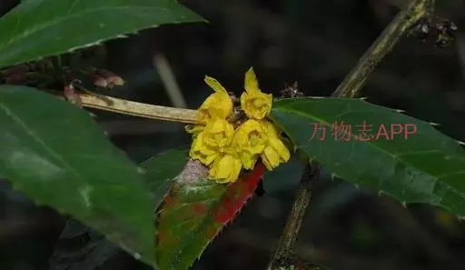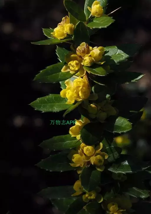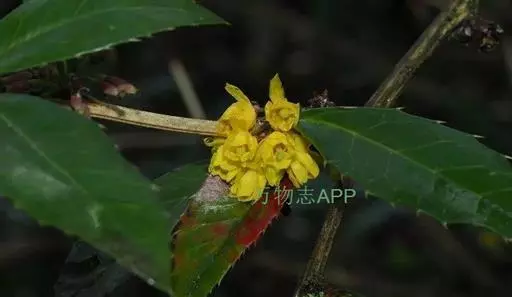 常绿灌木,高1-2米。老枝圆柱形,暗灰色,幼枝淡黄色,具棱槽及疣点;茎刺三分叉,无槽,长1.5-2厘米,与枝同色。叶革质,椭圆形、卵状长圆形、长圆状披针形至倒卵状长圆形或倒披针形,长2.5-4.5厘米,宽1-1.5厘米,先端急尖,具1刺尖头,基部楔形,上面暗绿色,中脉明显凹陷,侧脉清晰可见,背面淡绿色,中脉明显隆起,侧脉不显,两面网脉显著,不被白粉;叶缘通常平展,每边具3-8刺齿,有时具1-2刺锯齿;近无柄。花7-15朵簇生;花梗长5-12毫米;花黄色;小苞片披针形,先端渐尖,长约2.5毫米,宽约1毫米;萼片2轮,外萼片披针形或卵形,先端渐尖,长约3.5毫米,宽约2毫米,内萼片披针形或长圆状椭圆形,先端渐尖或纯,长8-9毫米,宽约3.5毫米;花瓣长圆形或长圆状倒卵形,长约4-5毫米,宽约3.2毫米,先端全缘或浅锐裂,基部楔形,具2枚分离腺体;雄蕊药隔先端微延伸,截形;胚珠2-3枚,具短柄。浆果卵状,长约9毫米,直径约5毫米,顶端具短宿存花柱,微被白粉。花期3-5月,果期8-10月。