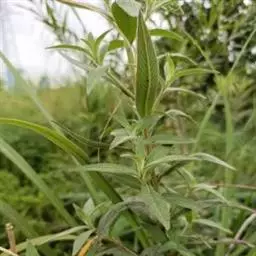 丁香蓼,别名:小石榴树、小石榴叶、小疗药,拉丁文名:Ludwigia prostrata Roxb.,是桃金娘目、柳叶菜科、丁香蓼属一年生直立草本;茎高25-60厘米,粗2.5-4.5毫米,下部圆柱状,上部四棱形,常淡红色,近无毛,多分枝,小枝近水平开展。叶狭椭圆形,先端锐尖或稍钝,基部狭楔形,在下部骤变窄,开花时以四合花粉直接授在柱头上;柱头近卵状或球状,顶端稍偏斜,具小尖头,表面有横条排成的棕褐色纵横条纹;种脊线形,花期6-7月,果期8-9月。
