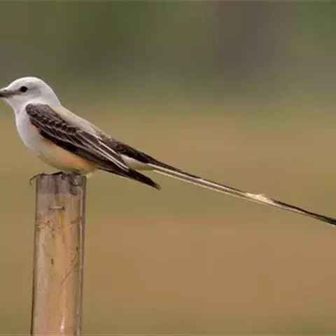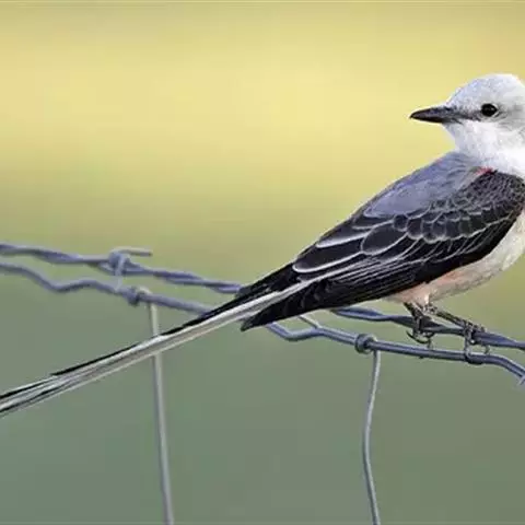剪尾王霸鹟,拉丁文学名:Tyrannus forficatus 霸鹟科是亚鸣禽中最大的一科,至少有115属360种,主要分布于美洲热带地区,但在北到阿拉斯加的北美洲各地也能见到,是亚鸣禽中唯一遍布南北美洲的一科。典型的霸鹟形状和习性与旧大陆的鹟类相似,在空中捕食昆虫,有些种类则食浆果等,体型较大的种类还捕食小哺乳动物等,也有一些在地面奔跑生活。有些种类的霸鹟勇敢好斗,敢于和比自己体型大很多的动物搏斗,有“必胜鸟”之称。