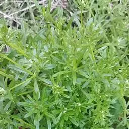 阔叶丰花草(学名:Borreria latifolia (Aubl.) K. Schum.)是茜草科,丰花草属披散、粗壮草本植物,被毛;茎和枝均为明显的四棱柱形,叶片椭圆形或卵状长圆形,长度变化大,边缘波浪形,鲜时黄绿色,叶面平滑;叶柄扁平;托叶膜质,花数朵丛生于托叶鞘内,无梗;小苞片长于花萼;萼管圆筒形,花冠漏斗形,浅紫色,裂片线形。蒴果椭圆形,种子近椭圆形,两端钝,5-7月开花结果。