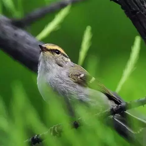 极北柳莺:体长11-13厘米,体小偏灰橄榄色,具明显的黄白色长眉纹,眼先及过眼纹近黑。上体概呈灰橄…