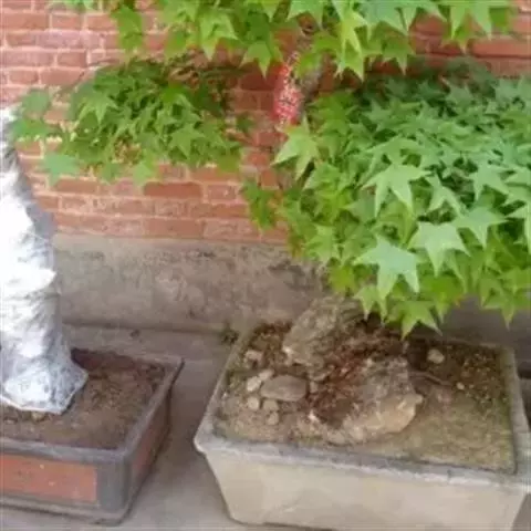 选盆:鸡爪槭宜用较浅的椭圆形或长方形釉陶盆,其中红叶的变种,则宜选用灰白、淡蓝、淡绿、淡黄等色,黑色效果也很好。绿叶的种类可选用紫、红等色。