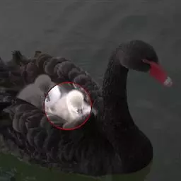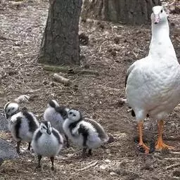 刚出壳的幼雏羽毛呈浅灰色,胎绒羽湿润,不能站立,依偎在雌鸟翅下或腹下取暖。2-5小时绒羽干燥松软,即可站立。8小时后雏鸟能从雌鸟翅下伸出头颈观察四周,若有动静,幼雏很快将头缩回。1-3天后可随亲鸟下水活动,在亲鸟带领下觅食。幼雏的食物有植物的嫩叶、果实、昆虫等。首先亲鸟叼起食物唤雏,雏走到跟前时,亲鸟把食物放在地上,雏食之,也有直接从亲鸟嘴中取食。幼雏随亲鸟在水中、岸边觅食,饱食后选择较干燥处休息。此阶段幼雏食量很大,发育极快。孵化后150-170天离窝。幼鸟6个月左右即可飞行,但会留在家庭组约9个月。