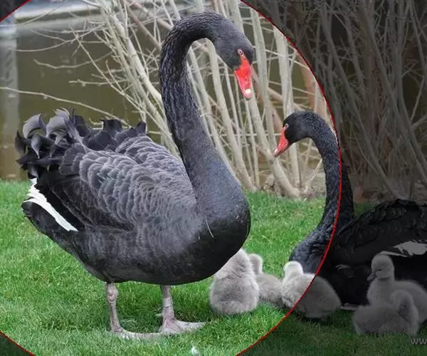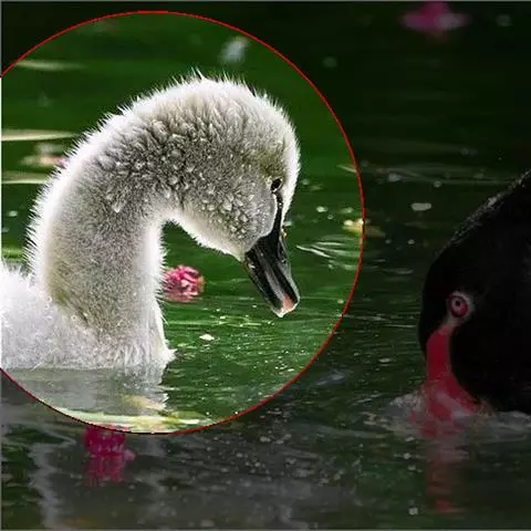 黑天鹅比疣鼻天鹅更为亲近人。幼鸟呈灰褐色,羽毛浅且颜色较浅。 与许多鸟类一样,雄天鹅(称为"cob")比雌天鹅(称为"pen")稍大一些,存在性二态性。 [4-5]