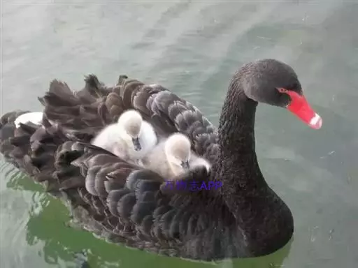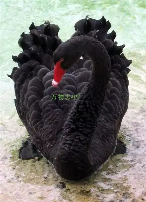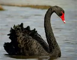 黑天鹅(学名:Cygnus atratus):是鸭科天鹅属的一种大型游禽,体长110-140厘米;翼展160-200厘米;体重3.7-8.75千克。具有天鹅种类中最长的脖子。这个细长的脖子通常呈“S”形拱起或直立。全身羽毛卷曲,体羽斑点闪烁,主要呈黑灰色或黑褐色,腹部为灰白色,飞羽为白色。尾长而分叉,外侧羽端钝而上翘形似竖琴。有一个明亮的蜡质的鸟喙,为红色或橘红色,靠近端部有一条白色横纹。虹膜为红色或白色,跗跖和蹼为黑色。共有2个亚种,指名亚种嘴较厚重。