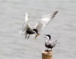 黑天鹅的求爱行为是一种特别有趣的事情是“凯旋仪式”,这用于加强配偶之间,父母和小天鹅(雏鸟)之间的对偶关系,以及宣示领地的表现。雄天鹅翅膀和下巴接近雌天鹅,反复呼叫。然后雌鸟相应鸣叫,然后它们以直立的姿势交替头部。在此之后,鸟儿们伸出脖子,并向上抬起鸟喙,然后以45度的角度扬起脖子,将他们的鸟喙以直角向下,继续游一圈。这些仪式主要由雄性开始,当天鹅周围有更多天鹅时,频率会增加。亲鹅嘴上红斑鲜亮,羽毛更加富有光泽,配对的黑天鹅形影不离,互相戏水、追逐,接头交颈,显得特别兴奋、亲热。交尾前雌雄并排在水面上洗浴,雄鸟游到雌鸟后边,用嘴轻叼雌鸟颈部,雌鸟头向后仰,尾羽翘起,表示愿意接受交配。这时雄鸟则抓住时机,张开双翅,登上雌鸟背上,频频扇动双翅以保持身体平衡,尾部用力下压。浮在水面的雌性尾部翘起,下半身埋在水中。交尾后雄性首先煽动翅膀并高声鸣叫,呈兴奋状,雌性则头与颈时而埋在水中,时而双翅轻拍水面,并向尾部泼水,洗理羽毛。雌雄每次交尾时间持续约3-5秒。 [4-5]