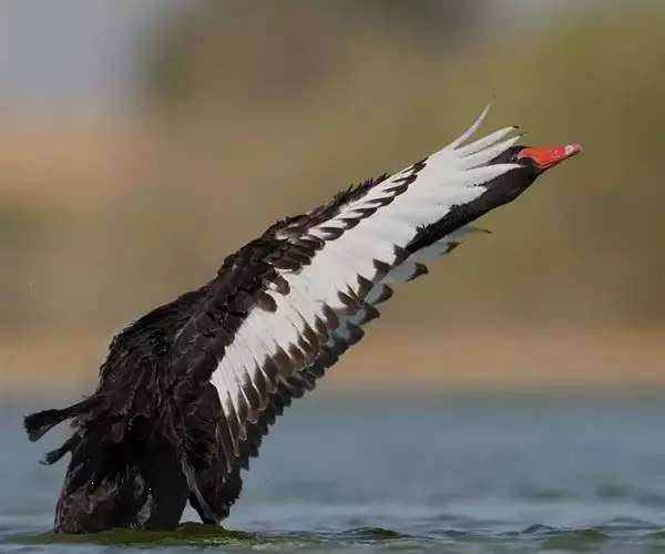 红胸秋沙鸭属中等食鱼鸭类,体长53厘米。嘴细长而带钩,捕食鱼类。丝质冠羽长而尖。雄鸟黑白色,两侧多…