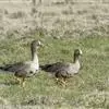黑雁是雁形目鸭科黑雁属鸟类,又称黑鹅。头、颈、胸、嘴及脚黑褐色;虹膜褐色;背及两翼灰褐色;尾下覆羽白色;胸侧及胁部多近白色纹;颈部两侧各具一个特征性白色横纹,在颈前后断开,未能联成颈环。幼鸟颈部无白斑,而翅上多白色横纹。黑雁繁殖于北美洲、西伯利亚极地的苔原冻土带,越冬于南方沿海的草地及河口。在中国安徽也能见其身影。主要栖息在海湾、海港及河口等地,在冬季里大多出现在有耐碱植物生长的湖泊和水库周围,也出现在周围地势低洼的咸水湖和沿海地区,偶尔还出现在农田地里。性活跃,喜集群,常成群活动和栖息。主要以植物性食物为食。繁殖期在6-8月,雌鸟孵卵,雄鸟通常在距巢100米以内范围内守候警诫。雌鸟孵卵时常将头和颈朝地面平伸出去以降低高度。孵化期为22-28天。黑雁被列入中国林业局2000年8月1日发布的《国家保护的有益的或者有重要经济、科学研究价值的陆生野生动物名