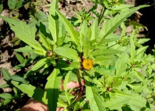 叶对生,无毛,叶柄有狭翅,中部叶通常羽状,3~5裂,顶端裂片较大,椭圆形或长椭圆状披针形,边缘有锯齿;上部叶3深裂或不裂。头状花序顶生或腋生,直径1~3cm;总苞片多数,外层倒披针形,叶状,长1~4cm,有睫毛;花黄色,全为两性管状花。瘦果扁平,倒卵状楔形,边缘有倒刺毛,顶端有芒刺2,少有3~4枚,两侧有倒刺毛。