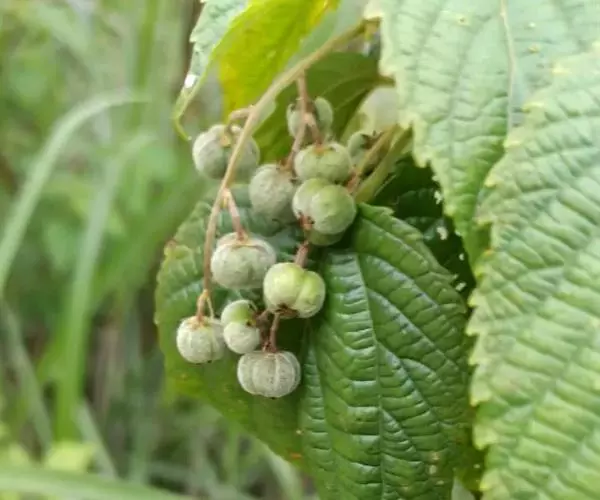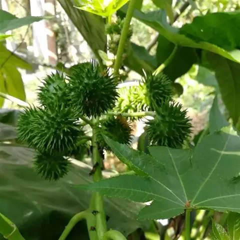 灌木或小乔木,高1.5-5米;小枝、叶柄、花序均密被白色或淡黄色长柔毛。叶纸质,卵形或卵状椭圆形,长7-14厘米,宽5-12厘米,顶端渐尖,基部圆形或近截平,稀浅心形或阔楔形,边缘具锯齿,上面被糙伏毛,下面被绒毛,叶脉上被白色长柔毛;基出脉3-5条,侧脉4-6对:近基部两侧常具褐色斑状腺体2-4个;叶柄长3-8厘米,顶端具2枚线形小托叶,长约3毫米,被毛,边缘具黄色小腺体。总状花序或下部多分枝呈圆锥花序,长15-20厘米,苞片卵形,长约2毫米;雄花3-5朵簇生于苞腋,花梗长约3毫米;花萼裂片3-5,卵形,长约2毫米,顶端渐尖;雄蕊35-60枚,花丝纤细;腺体小,棒状圆锥形;雌花1-2朵生于苞腋,苞片披针形,长约2毫米,疏生长柔毛,花梗长约3毫米;花萼裂片卵形,长约3毫米;花盘具圆齿,被毛;子房被黄色糙伏毛,花柱长1-3毫米,外反,2深裂至近基部,密生羽毛状突起。蒴果扁球形,直径6-8毫米,被柔毛。花期4-8月,果期8-10月。