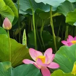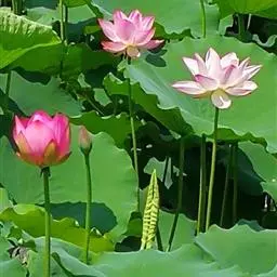 子莲:以采收莲子为主,能耐深水及成熟较晚,其成熟期一般为30-35天,莲子即可鲜食,味道甘甜,一般授粉后第十五天的莲子,口味更好;成熟的莲子,晒干脱水后,经去壳去莲子心后,可用于食用营养物质含量丰富,耐储藏。花多而单瓣,叶脉常不突起,藕细小而硬。有红花、白花2种,如红莲、湖南湘莲、白花建莲、处州白莲及武义宣莲等。