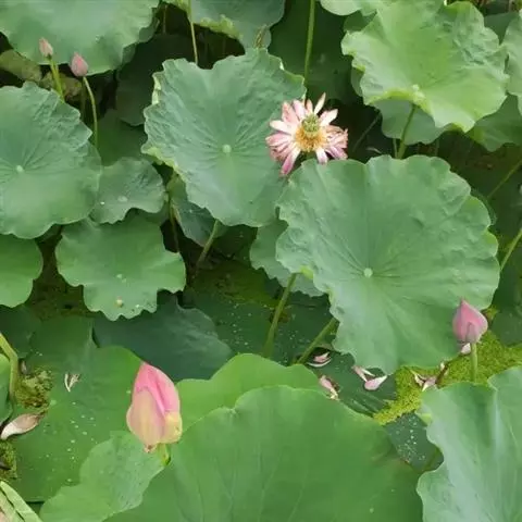 莲喜空气流动的环境。在微风下婆娑多姿;遇6级以上大风,莲叶彼此碰撞易破损,重瓣、重台、千瓣等大花品种的花柄易折断和倒伏,碗莲则更娇,花易伤,蕾易败。