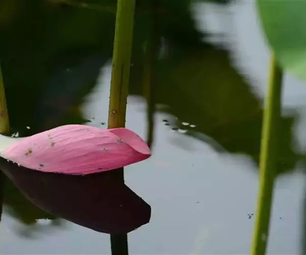 凋谢:花瓣陆续凋落,雄蕊花丝萎缩,花丝顶端的附属物倒下,随之枯萎。莲花属虫媒花,主要靠昆虫活动完成授粉。即使在花朵初开的前一天保留雄蕊套袋,不让昆虫进入,依然有20%的心皮能正常结实莲子,证明莲有较强的自花授粉能力,故在杂交育种实验中套袋环节不可省略。