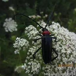 桃红颈天牛是天牛科、颈天牛属昆虫。体黑色发亮,前胸背面大部分为光亮的棕红色或完全黑色。头黑色,…