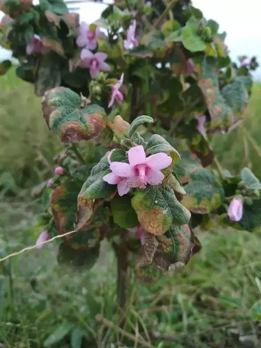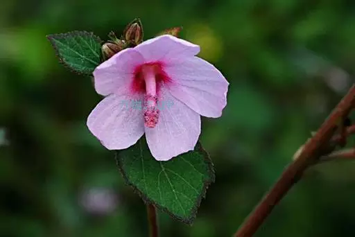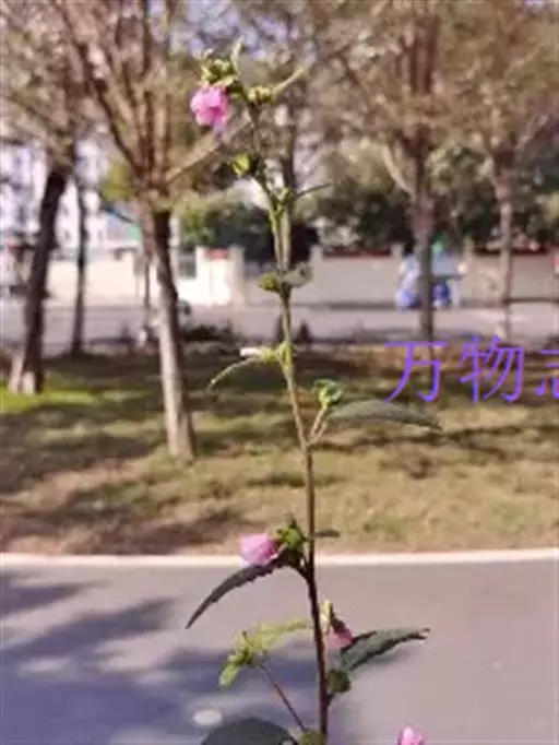 1、地桃花:又名肖梵天花。直立亚灌木状草本,高达1m。小枝被星状绒毛。叶互生;叶柄长1-4cm,被灰白色星状毛;托叶线形,长约2mm,早落;茎下部的叶近圆形,长4-5cm,宽5-6cm,先端浅3裂,基部圆形或近心形,边缘具锯齿;中部的叶卵形,长5-7cm,宽3-6.5cm;上部的叶长圆形至披针形,长4-7cm,宽1.5-3cm;叶上面被柔毛,下面被灰白色星状绒毛。花腋生,单生或稍丛生,淡红色,直径约15mm;花梗长约3mm,被绵毛;小苞片5,长约6mm,基部合生;花萼杯状,裂片5,较小苞片略短,两者均被星状柔毛;花瓣5,倒卵形,长约15mm,外面被星状柔毛;雄蕊柱长约15mm,无毛;花柱枝10,微被长硬毛。果扁球形,直径约1cm,分果爿被星状短柔毛和锚状刺。花期7-10月。