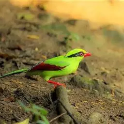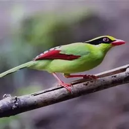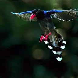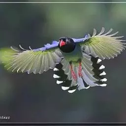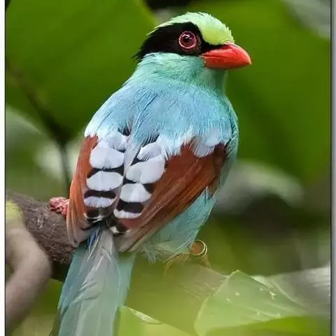 蓝绿鹊:中型鸟类,共有5个亚种。体长36-38厘米。尾长,嘴、脚红色。通体羽色主要为草绿色,…