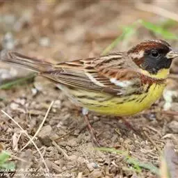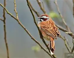 栗斑腹鹀:属小型鸣禽。体重19-25克,体长145-167毫米。头顶至背栗红色,眼先和颧纹黑褐色,…