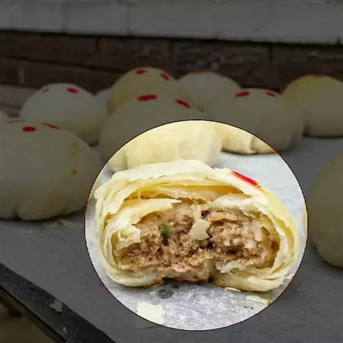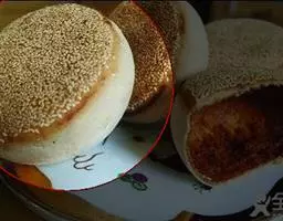 3.取一个剂子,两端封口,擀成薄片儿,放入六成热的油锅中,两面煎黄,待饼鼓起来就熟了
